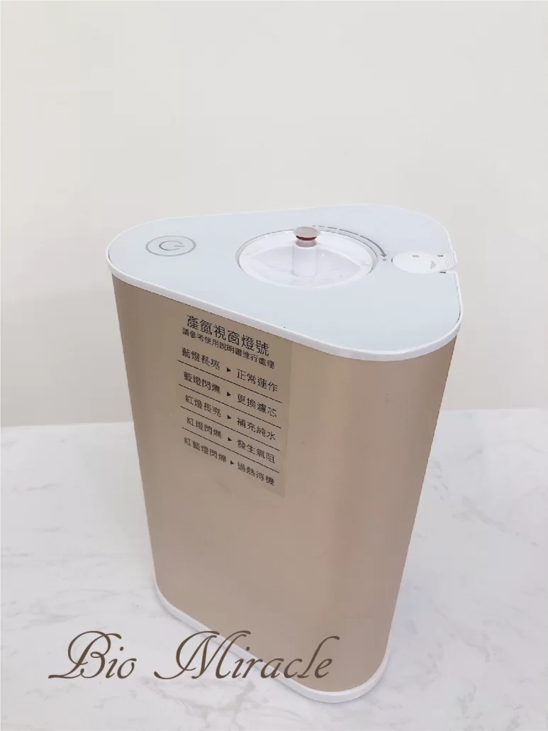 創新質子膜技術,超高純度氫氣 氫氧分離技術,超高濃度氫氣 雙重使用方式,可吸取可飲用 產氫量100mL/min 鋁合金機身,觸控式操作面板 國際電壓,安全散熱裝置 離子樹脂濾芯淨化水質